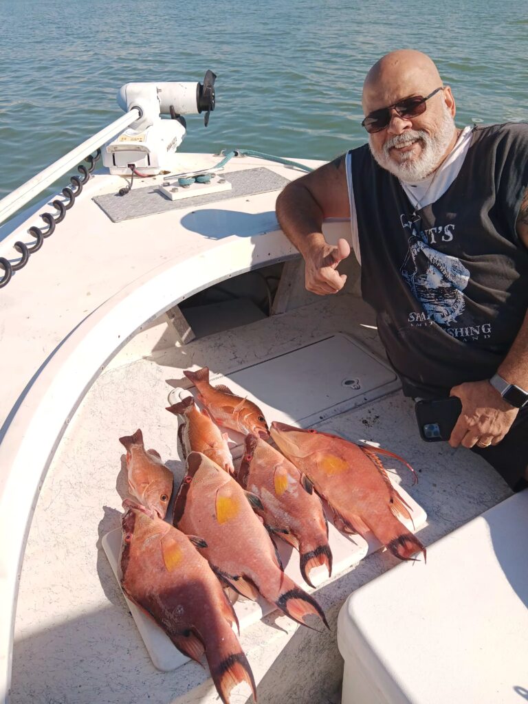 Another great trip out in 35 ft of water Northwest of Clearwater. Heather and her brother Mark from West Virginia got some really nice hogfish mixed with a couple 5 lb trigger fish as well as a few 4 to 6 lb corgis until the tax man showed up. We had a cormoran duck chasing […]